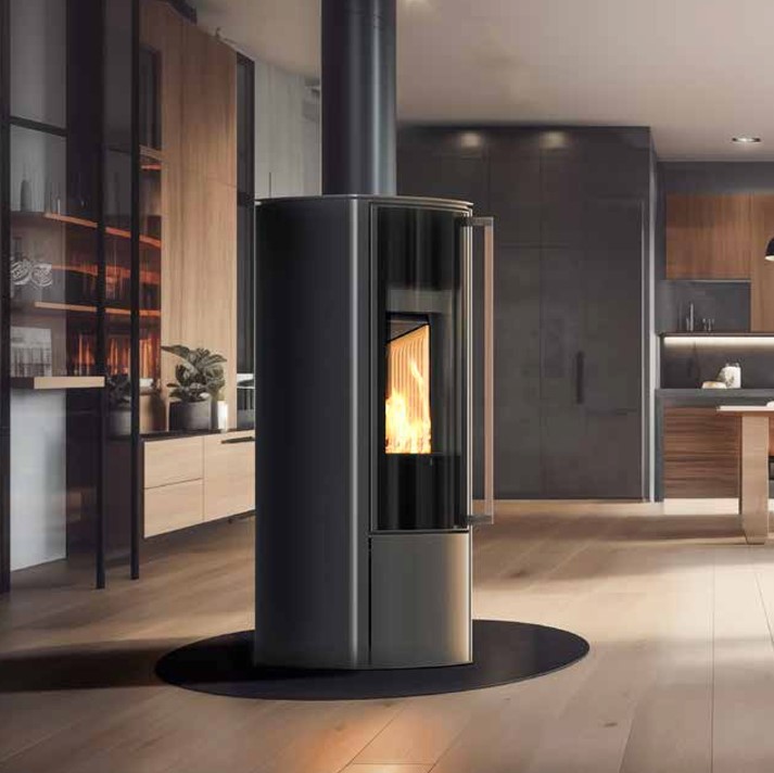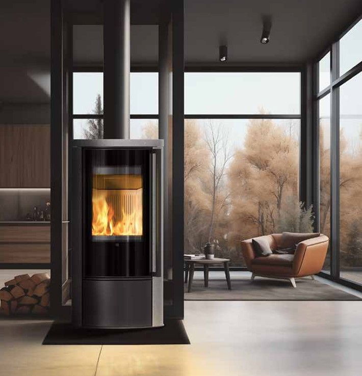Zeitloses Design, elegante,abgerundete Verglasung, effiziente und saubere Verbrennung